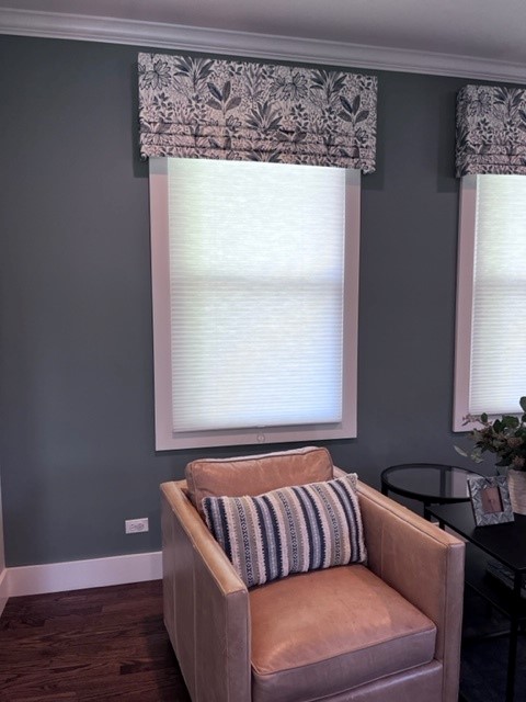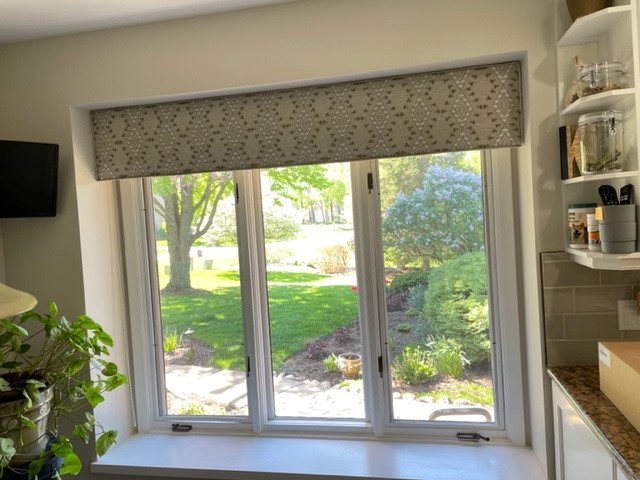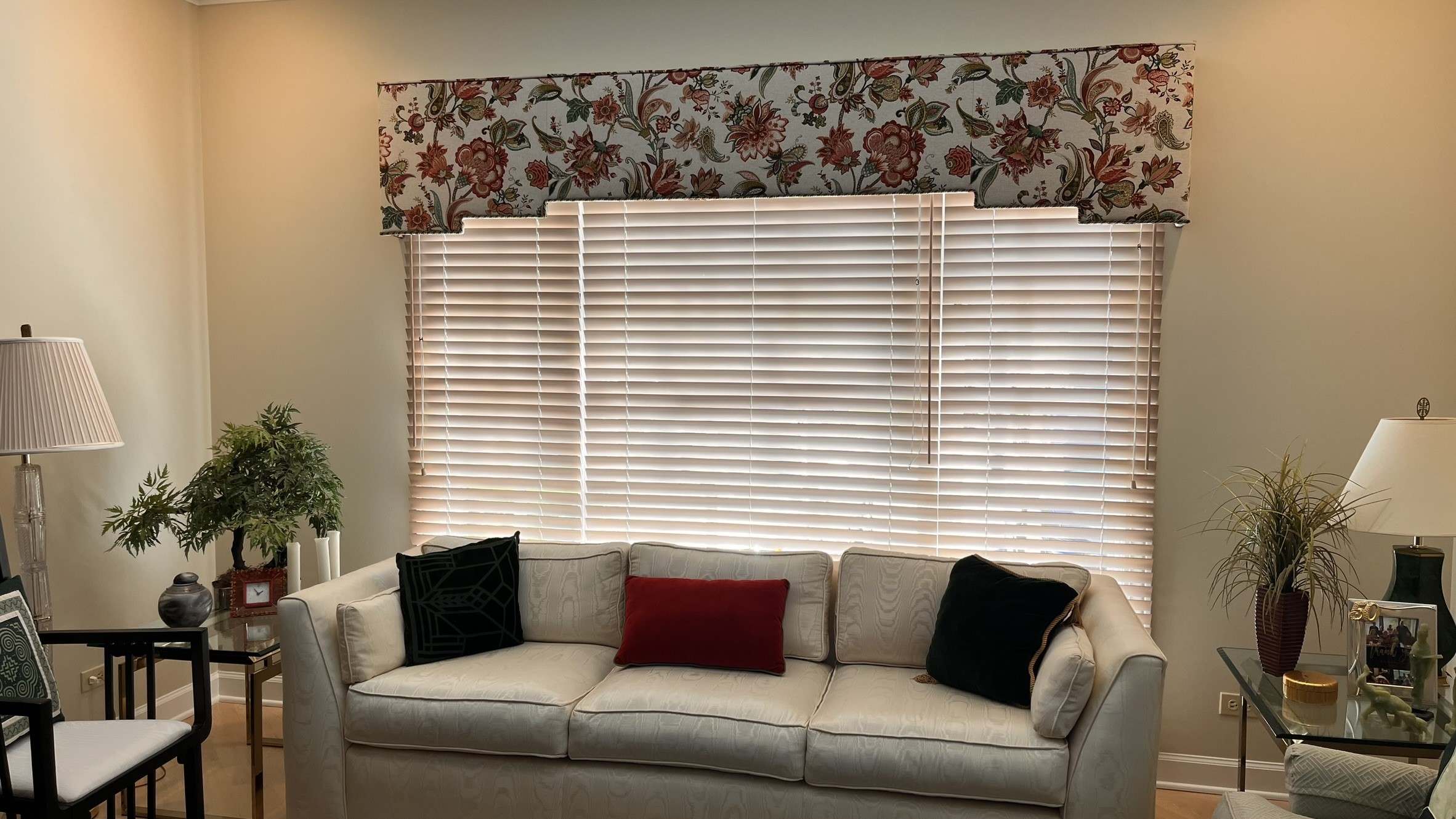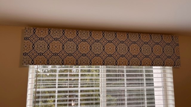 Valances and cornices are complementary to many window treatments, including shutters, blinds, and draperies. Besides adding beauty, they conceal the hardware of your curtains or drapes. A top treatment may also be stunning by itself, a crowning touch that completes your décor with a pop of color or bit of pattern.